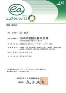 古林産業機具(株)は、エコアクション21の認証・登録事業者です